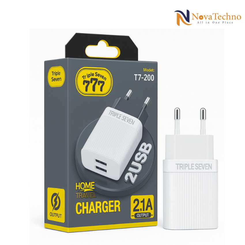 ✔️ شاحن Triple Seven T7-200 بمدخلين USB وشحن سريع 2.1A